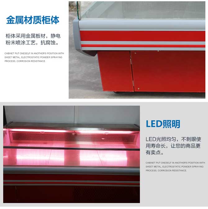 1:開放式銷售方式,時尚,方便,展示效果好,尤其適用于現場加工,保鮮和銷售鮮肉食品。
